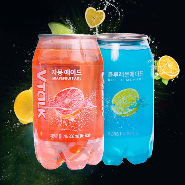 韩国进口VTaLK蓝色冰爽柠檬味粉色甜蜜西柚味碳酸饮品350ml