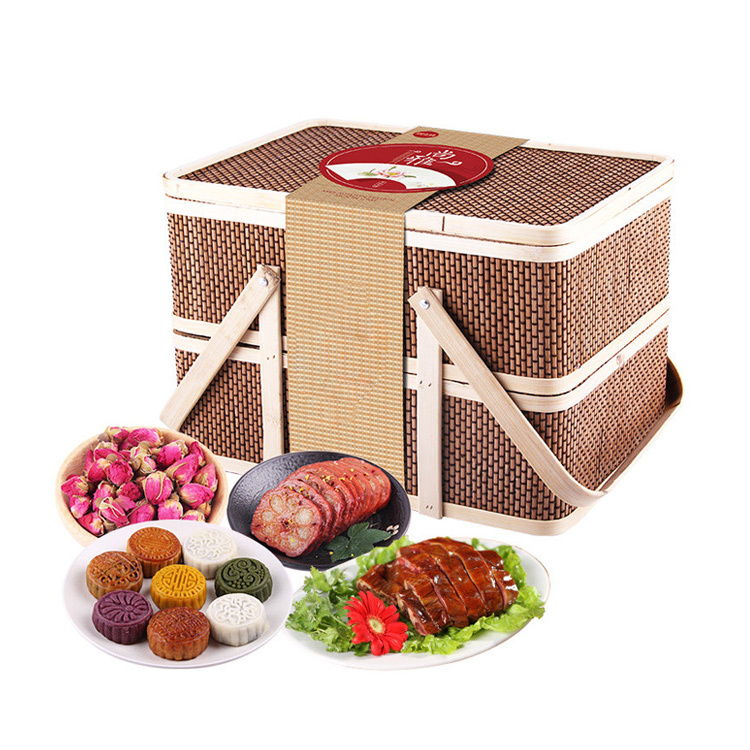 双层竹篮装月饼礼盒-广式蛋黄莲蓉豆